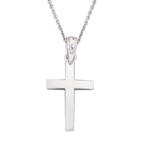 After many months of looking for a small white gold plain cross, I finally found what I was looking for. This cross necklace is beautiful and elegant. The cross itself, not including the bail is about 1/2 of an inch long. It is a nice quality white gold and the cross has kept it's beautiful shine with no scratches even with daily wear for the past 4 months. I would definitely buy this again.