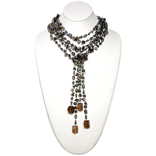 HinsonGayle "Kiera" Double Strand Black Cultured Pearl Lariat Necklace (Glamour Collection) Product Description: