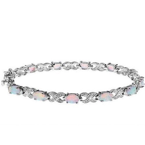 "Introducing the opal bracelet to our Opal Jewelry Collection! This silver bracelet is made of solid .925 sterling silver, genuine opal and Figure Eight Infinity links. Opal is the birthstone of October. Opal stone represents loyalty, faithfulness and a stone of protection. Eleven oval-cut opal are held in four-prong setting links with pave cubic zirconias on wide X style links. Opal stones are 4mm x 6mm. CZ stones are 2mm. Rhodium finish adds luster and shine to this opal bracelet. A classy gift for a classy lady. A tongue snap closure clasp with safety wings ensures it won?t come undone and be lost. The silver opal bracelet fits a 7-inch wrist. Love 925 Jewelry, you're at the right place. Don't miss out on the deep savings!"