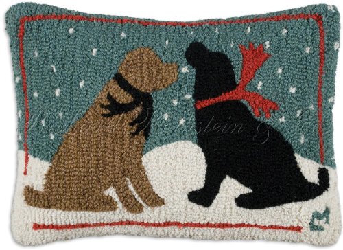Golden & Black Lab Dog Christmas Holiday Decorative 100% Wool Hand-Hooked Pillow. 14" x 20". Product Description: