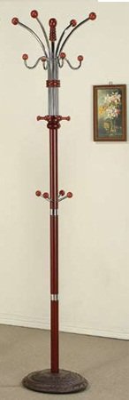Six Foot Wood and Chrome Coat Rack Cherry Finish Product Description: