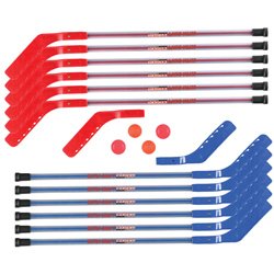 Designed for superior performance and the ultimate in durability Transparent plycarbonate "I" beam construction is reinforced with a fiberglass dowel The most durable Cosom shaft available Fiberglass reinforced polyethylene blades for unparalleled strength and resilience Set includes 12 sticks 6 red, 6 blue), 2 balls, 2 pucks and 2 replacement blades