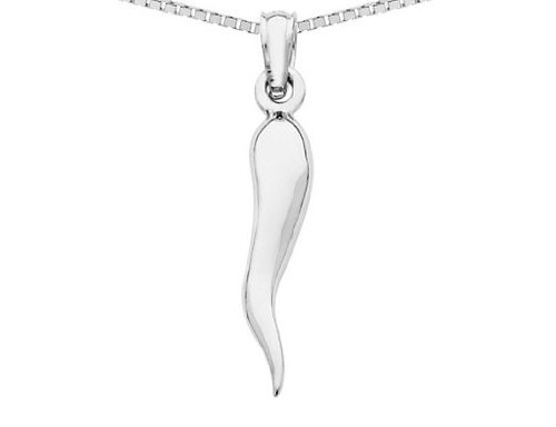 Italian Horn Pendant Necklace in 14K White Gold with Chain Product Description: