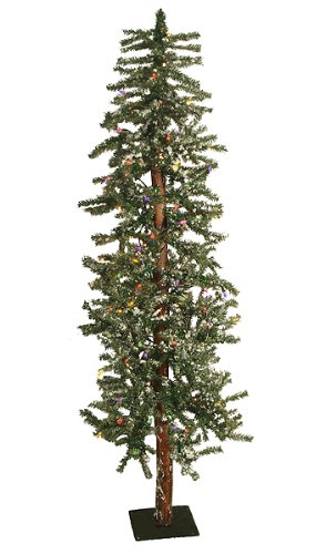5 Foot Pre-Lit Artificial Christmas TreeFrom the Flocked Alpine Collection Item #360540MCreate a magical winter wonderland effect with this beautiful natural-looking flocked alpine tree.Features short 0.75" wide tips in a medium green color with a realistic earthy wooden trunk and is accented with snow-like white flocking.Product Features: Dimensions: 5 feet high Approximate base diameter: 21 inches (at widest point) Distance from the base to the bottom row of branches: 12 inches475 tips Pre-lit with 150 multi-colored miniature lightsMulti-color consists of blue green orange pink and red bulbs If one bulbs burns out the rest stay lit3 foot long green lead cord (approx.)Contains 1 plug with end connector allowing you to stack multiple decorations together (maximum of 210 watts) Hinged branch construction4-piece easy assembly (including stand)Material(s): PVC/metal/wood Light sets on tree are UL listed for indoor or outdoor use however the tree itself is recommended for indoor use only.120 volts 60HzComes with spare replacement bulbs fuse and a FREE square black metal tree stand